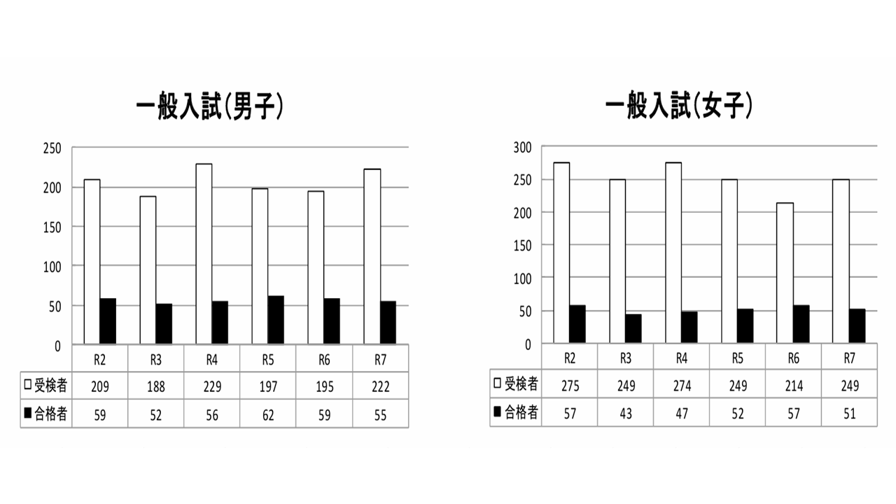実は、ここ2.3年、男女の合格者数は接近しており、元々女子の方が多いのが特徴ではあるものの、令和6年度入試では、男子の方が多く合格するという年もありました。ただ、今年度のように「女子が男子より10名も多くなる。」ということは、私の記憶の中では初めてのことで、令和8年度入試を占う上で特徴的な事例となります。
