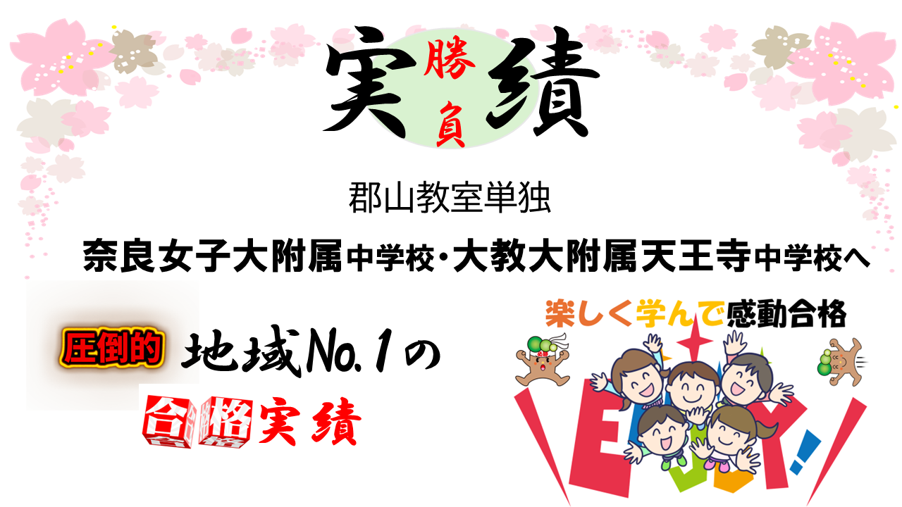 奈良女子大附属中学校へ 郡山教室単独で合格者5名以上を達成! 附天中へも感動合格多数! *地域とは郡山市内