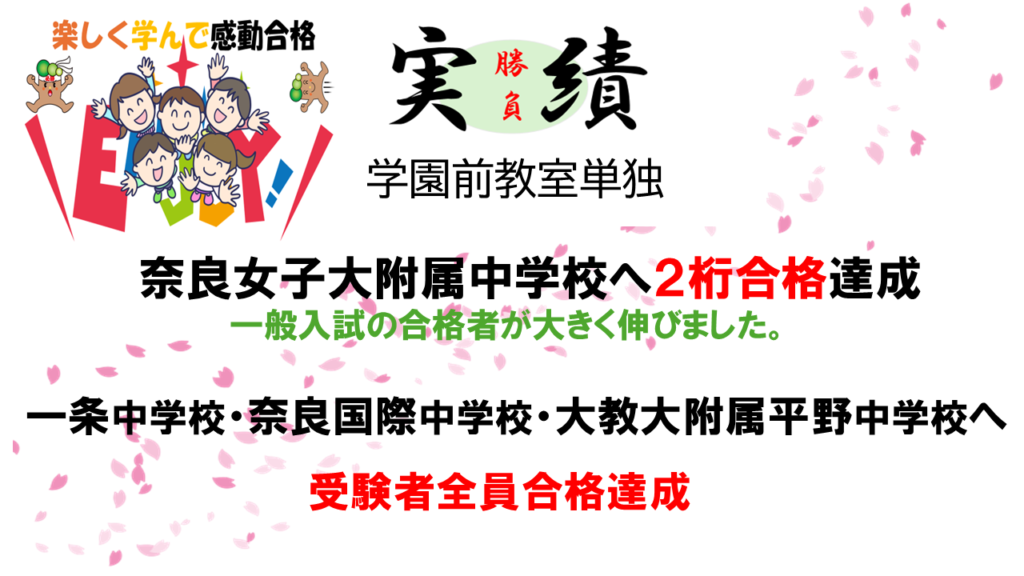 2年、長い子は3年前から通っている生徒たちですので、より合格の感動も深く、最高の気持ちです。少人数制の指導で生徒一人ひとりと向き合いながら、奈良女子大附中入試本番を迎えました。その結果、