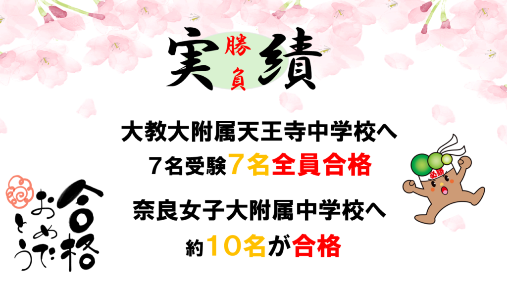 という快挙を成し遂げてくれました。特にその中に合って奈良教室の生徒は、受験生全員が合格するという素晴らしい結果をだしてくれました。