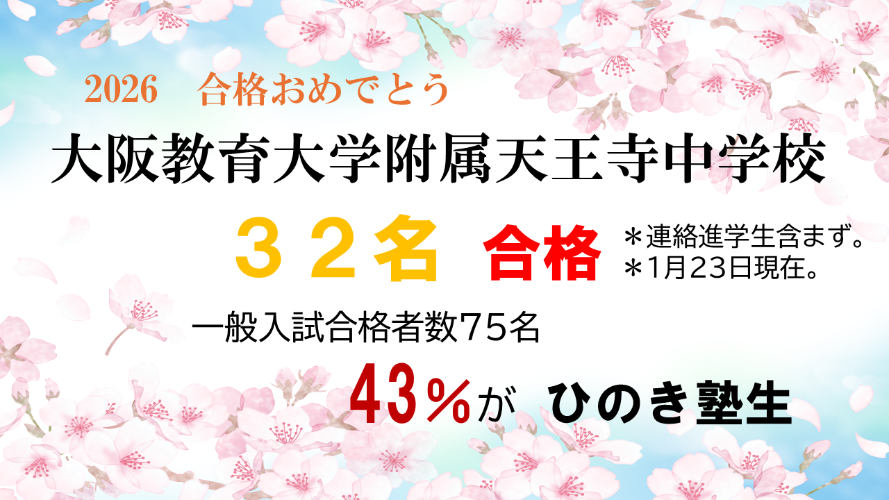 53名受験して32名合格 1.7人に1人が合格 塾生受験者の60%が合格する