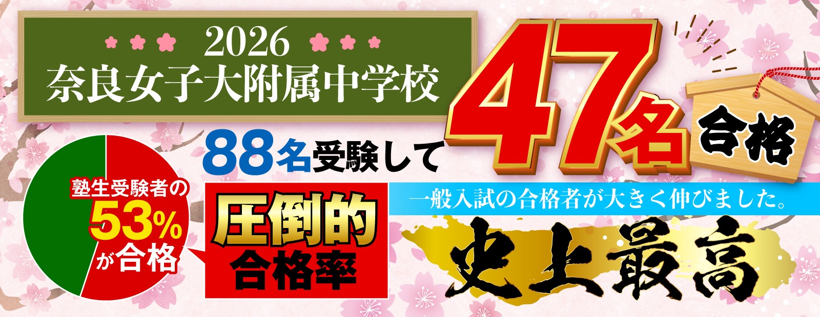 | 奈良女子大学附属中等教育学校 史上最高実績 | 47名合格 /88名受験