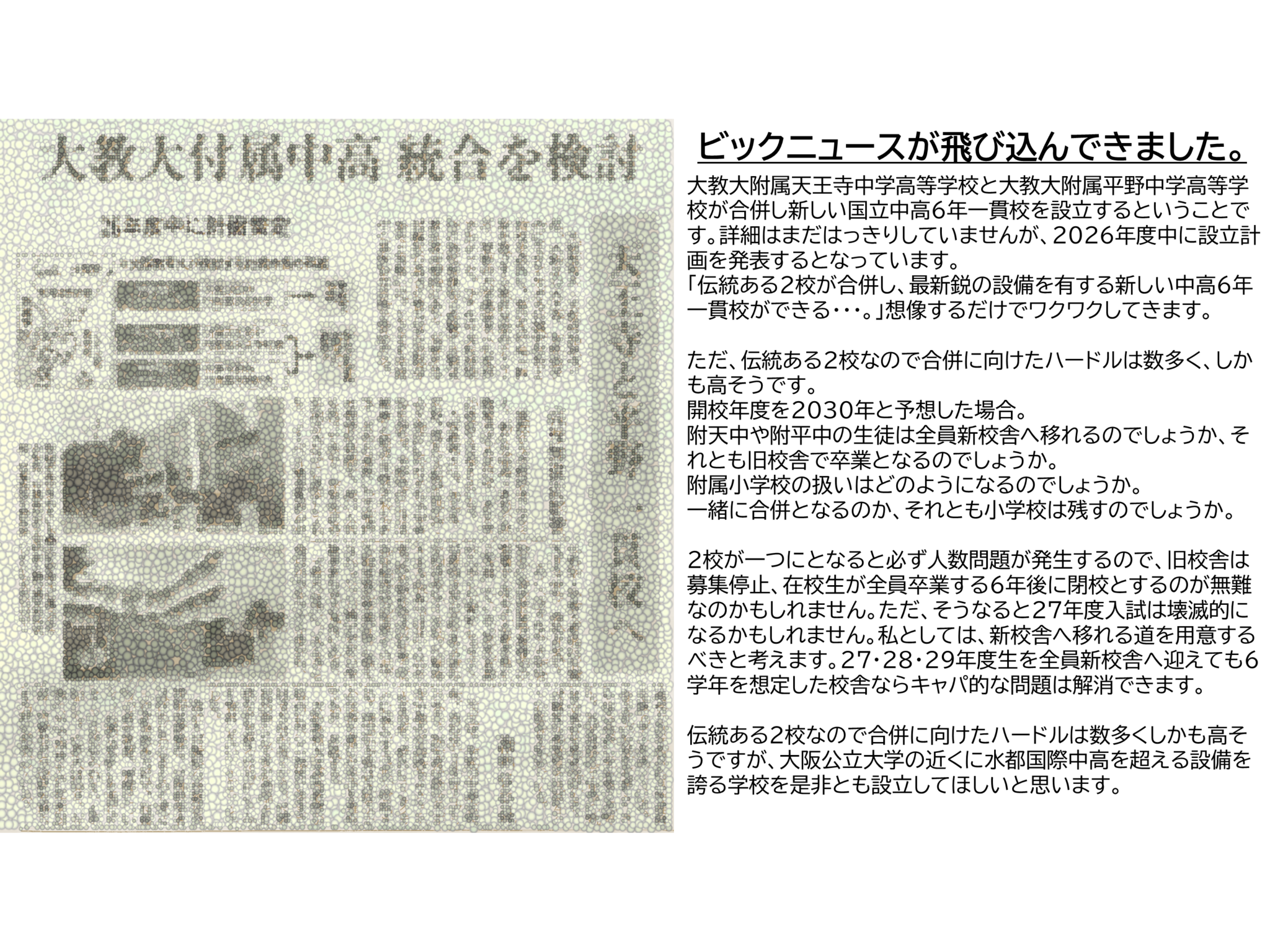 附天中・附平中合併。新しい中高6年一貫校設立へ。